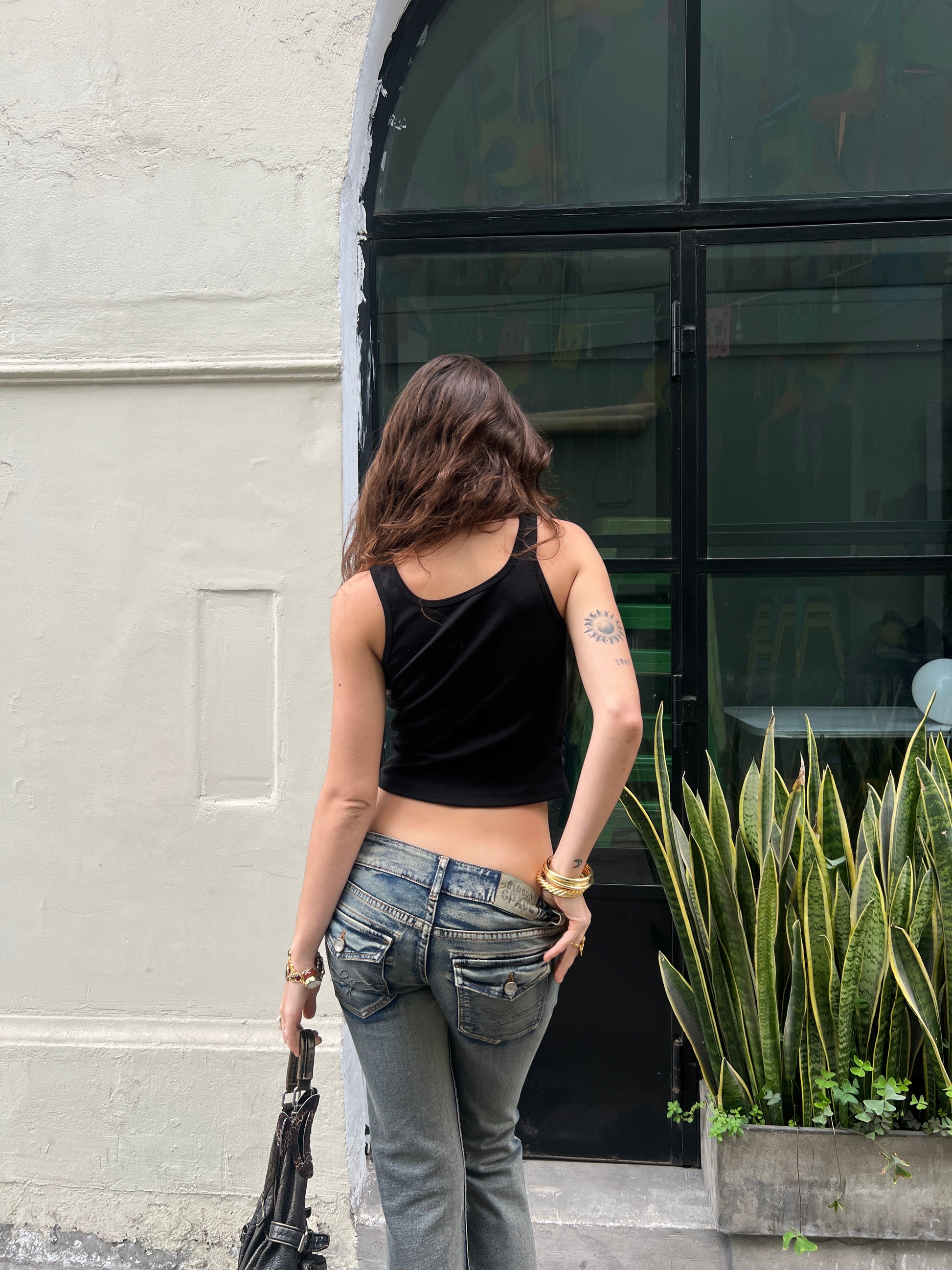 Tank Top con fit perfecto con detalle de botones de concha de Nacar bordados a Mano.
